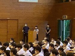 今日は、全校生徒と保体部の保護者を対象に学校保健委員会を実施しました。ハートスペースMから二人の講師(佐藤氏・萩原氏)の先生方をお招きし「デートDV」についてロールプレイを交えてお話しをしていただきました。とても分かりやすいお話しで生徒も保護者も真剣に聞き入っていました。