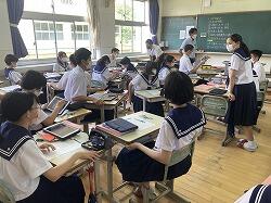 昨日は社会科の研究授業でした。ICTの効果的活用を考慮した授業で、ロイロノートを使ってお互いの考えを共有しながら学びを深めていくものでした。生徒たちは多様な考えをグループで短時間に共有していました。