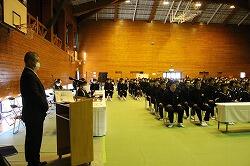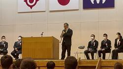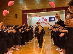 ※サプライズで、以前からある「飫肥中応援歌」を全校生徒で歌ってくれました。田中先生・・・さすがです!