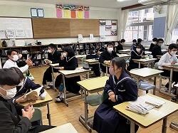 先週の水曜日、2学期の途中から行ってきたブックトーク(朝自習中に自分が読んだ本の紹介や感想を言い合う)が今年度最後となりました。どの学級もしっかりと自分の思いや考えを発表する姿が見られました。自分の思いを人前で言うことは難しいですが、生徒たちはだんだんとできるようになっていました。4月からも頑張りましょう。