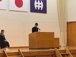 24日(金)は修了式でした。毎回のことですが3人の代表者は原稿を暗記し、しっかりと前を向いて立派に発表します。原稿を考え暗記する作業を考えると本当に感心します。発表内容も素晴らしく、「自分がこの学年で頑張れたことを誇らしく思う」「立志式の連凧づくりを責任をもってやれたことに自身をもてた」「トライアンドエーアンドトライで頑張ることができた」などしっかりと自分を振り返り、次への目標をもつことができていました。