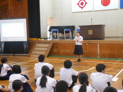 薬物依存の怖さを映像やプレゼンテーションから生徒は学びました。薬物に限らず、夏休みは飲酒や喫煙など誘惑が増える時期です。当事者意識を持ち、自分の身を守るため、今回の教室で学んだことを忘れずにいてほしいと思います。あわせて家庭で話題にしていただくことも、薬物から子どもたちを守ることにつながります。よろしくお願いいたします。