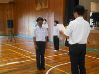 校長先生から旧生徒会役員(執行部・専門部)に感謝状が渡され、一人一人が退任のあいさつを行いました。