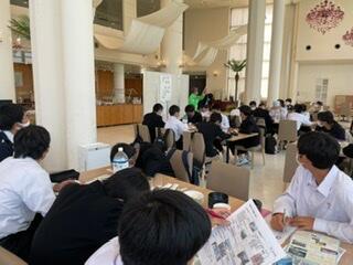 青島から日南海岸に広がる鬼の洗濯板などの成り立ちや青島神社にまつわる神話などの講話を聞きました。