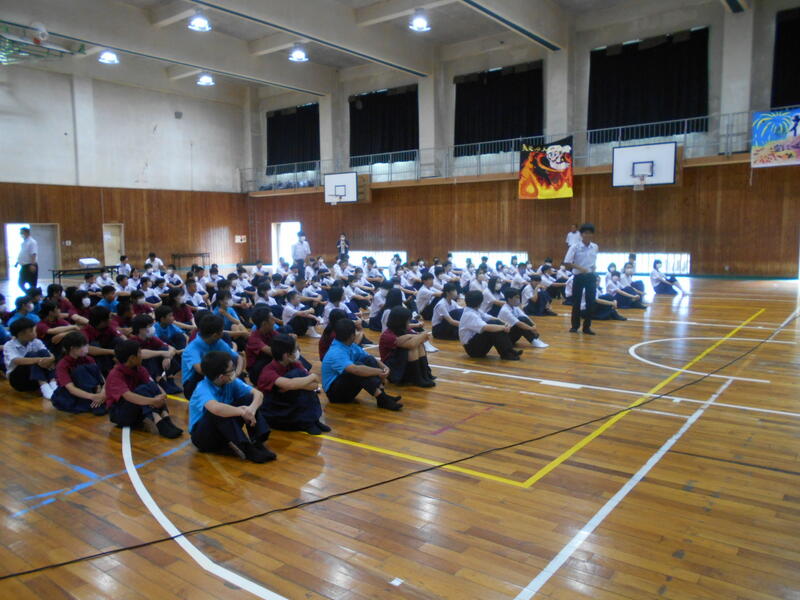 拡大清掃を済ませた後、体育館で2学期の始業式が行われました。