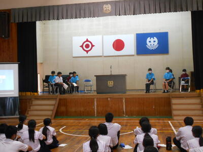 始業式後、学習、保健、生活面の担当者から2学期に向けての取組の確認が行われました。