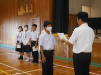 終業式では、代表生徒が1学期を振り返り反省を行いました。
