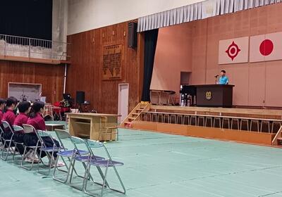 紹介があったあと、生徒会長が全校生徒に向けてメッセージを送りました。