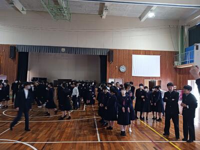いよいよ卒業式まであと3日、「3年生を送る会」が体育館で行われました。