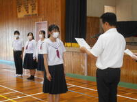 校長先生から旧生徒会役員(執行部・専門部)に感謝状が渡され、一人一人が退任のあいさつを行いました。