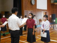 校長先生から旧生徒会役員(執行部・専門部)に感謝状が渡され、一人一人が退任のあいさつを行いました。