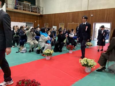 当日は教育委員、市議会議員、学校運営協議会議員、計10名の来賓の皆様にご臨席を賜りました。公務多忙の折、門出を祝してくださいました皆様に、厚く御礼申し上げます。