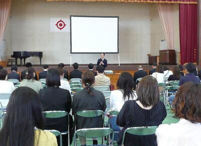 学校経営方針説明では、校長が本年度の方針を説明しました。
