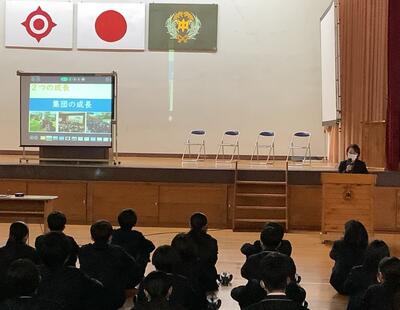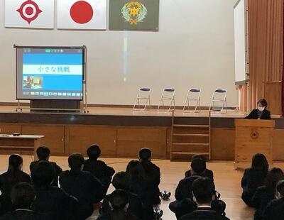 続いて校長先生から、「2つの成長」と「小さな挑戦」をテーマにしたお話がありました。