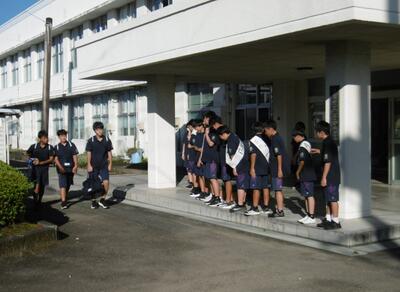 今週から、立候補した生徒たちが、朝の登校時間に校門前と生徒玄関前に分かれてあいさつ活動を行っています。