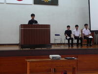 8月26日に2学期始業式を行いました。1、2、3年生及び生徒会執行部の代表4名が、2学期に向けての抱負を述べました。