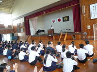 10月16日、宮崎県中学校秋季体育大会・南那珂地区駅伝大会の壮行式を行いました。どの部活動も新チームのスタート時より成長した姿を見ることができました。また、南那珂地区駅伝大会に出場する生徒たちも堂々とした姿で式に臨むことができました。
