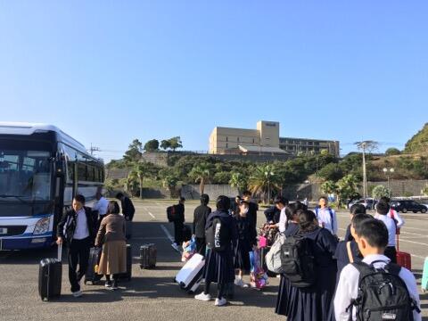 おはようございます。ただ今船内にて朝食を済ませ、帰る準備をしています。昨夜は船酔いする生徒もいましたが、朝には体調を取り戻しています。もうすぐ宮崎港に到着します。予定では、8時40分ごろを予定していますが若干の時間のズレはあるかと思います。
