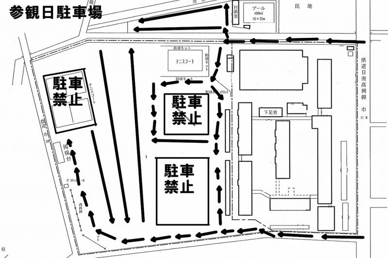 あすの参観日における駐車場につきまして、次の(1)(2)の要領で、本校グラウンドへの駐車をよろしくお願いいたします。地図も添付しておりますので、あわせてよくご覧になり、PTA会員相互の情報共有をよろしくお願いします。