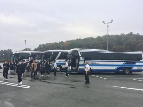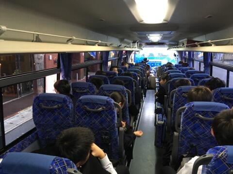第一休憩の霧島SAに向かうバスの中ではなかなか寝付けない生徒もいます。