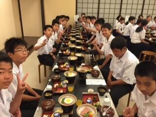 宮島錦水別荘で夕食です!体調不良者もおらず、順調です。時間・ルール・マナーを守って生活していきましょう!明日は厳島神社、大原美術館、人と防災未来センターに行きます。たくさんのことを学んできます!