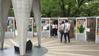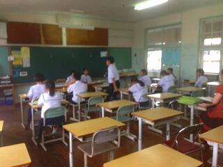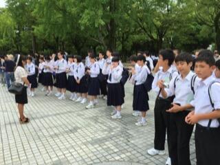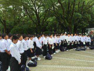 広島平和記念公園で、平和祈念式典を行いました。悲劇を学び、伝えていくことが戦争をなくすために必要なことです。子どもたちもメモをとりながら真剣に学んでいます。