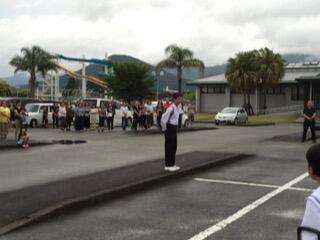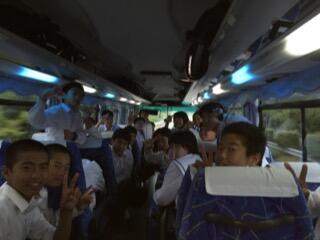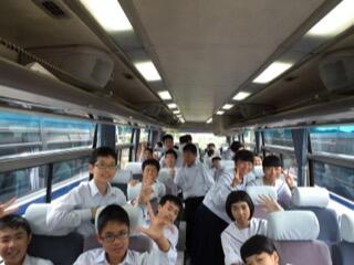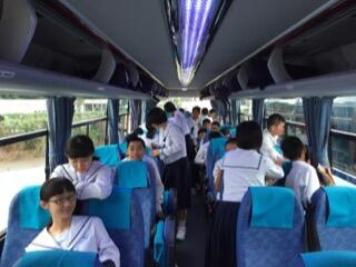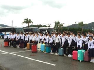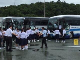 あいにくの曇り空ですが、2年生達が元気よく日南を出発しました!