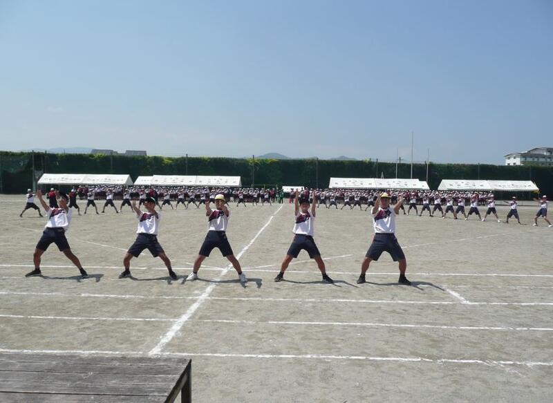 快晴の空のもと、全校生徒の気持ちが一つになり、充実した練習になりました。