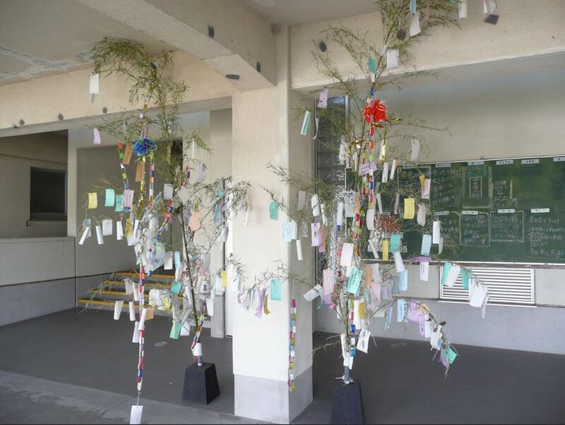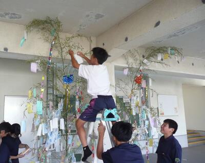 毎年この時期になると、更生保護女性会日南支部の皆さまから、笹と短冊をご寄贈いただいています。今年も、生徒たちが一人ひとり願いごとを短冊に書き、笹に結びつけました。