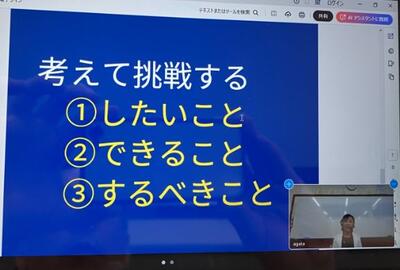 その後、校長先生からは「考えて挑戦する」というテーマで、