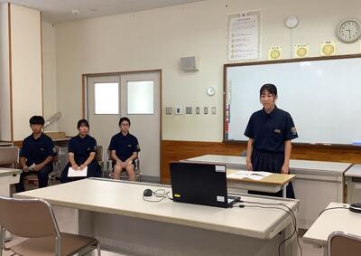 はじめに、1・2・3年生の各学年代表と生徒会代表、あわせて4名が、1学期の反省とそれを今後どのように活かしていくかについて発表しました。一人ひとりが具体的な振り返りと前向きな目標を語ってくれました。
