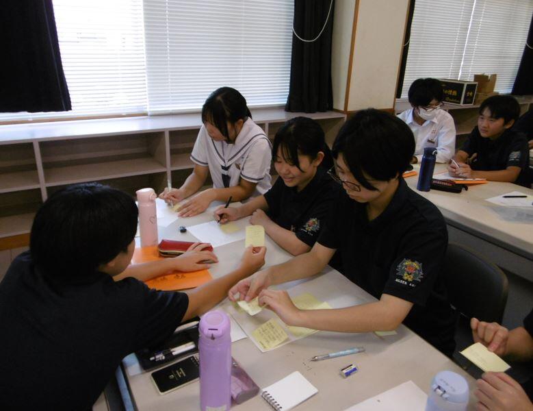 6校時には「認知症の方に出会ったとき、どのように対応するのが望ましいか」をテーマにグループワークを行いました。
