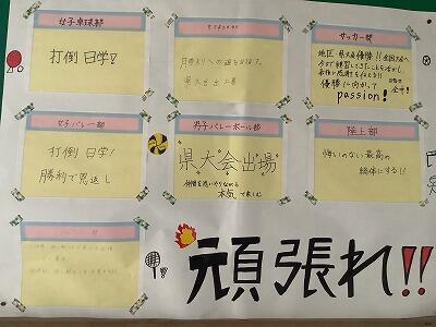 全ての部が、力の限り戦い抜くことでしょう。思いが伝わってくる下足棟前の掲示。