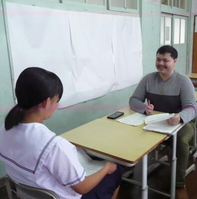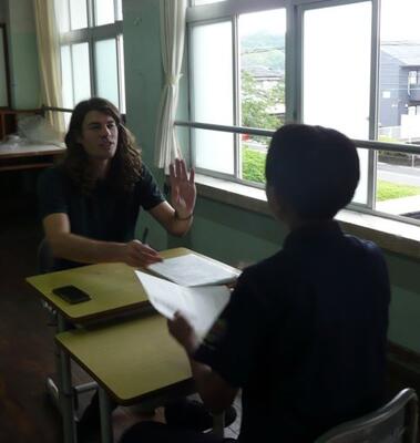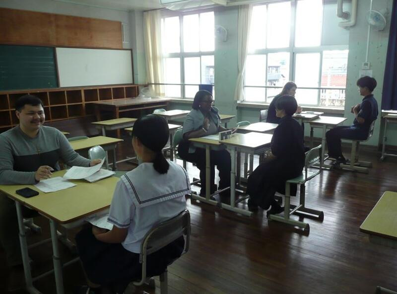 普段は、アーロン先生1名にご指導を受けていますが、この4日間は3名のALTの先生に来校していただきます。