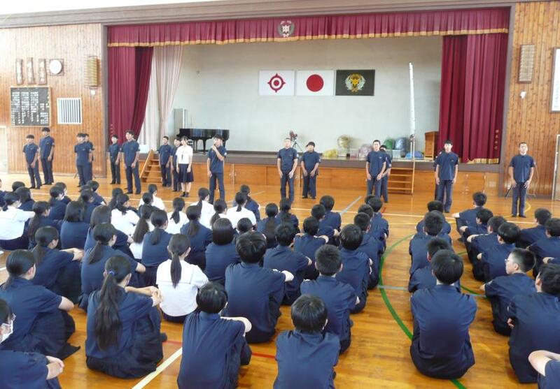 6月4日(水)5校時に、6月7日(土)8日(日)に実施される「第20回南那珂地区中学校総合体育大会」の壮行式を実施しました。
