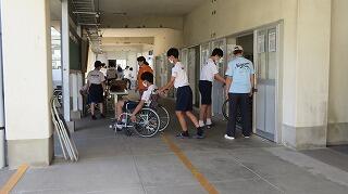 3年生は、総合的な学習の時間に、地域の方をお招きして、車椅子体験とアイマスク体験をしました。体の不自由な方の気持ちに寄り添えるような介助の方法を学びました。