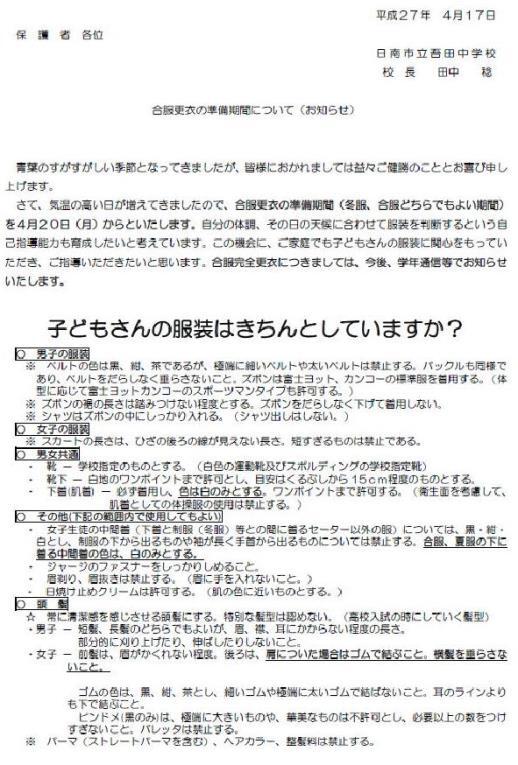 合服更衣の準備期間について(お知らせ)