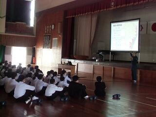 避難経路確認後、日南市危機管理課防災士 永井義広 様による講話の様子