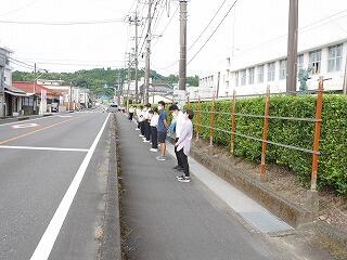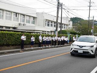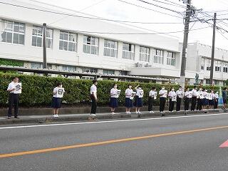 2学期始業式の翌日、朝のあいさつ運動を行いました。たくさんの生徒が「今日も元気に行ってらっしゃい!」のカードを持って、地域に元気を届けました!