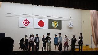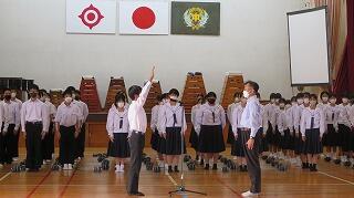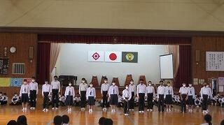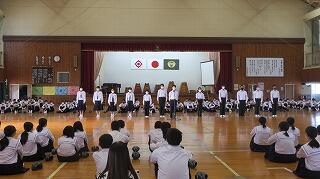 県中学校体育大会に向けての選手壮行式が行われました。今回南那珂地区代表になったのは、野球部・サッカー部・男子ソフトテニス部・陸上部・女子テニス部・女子バスケットボール部・女子バレー部・女子卓球部・男子卓球部・剣道部・柔道部・バドミントン競技・弓道競技・硬式テニス競技・空手競技の各部です。