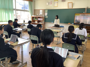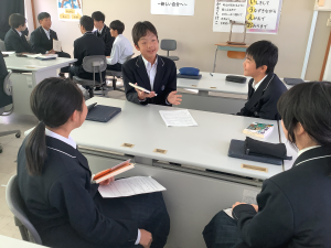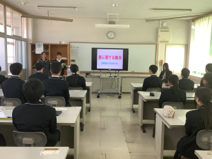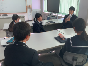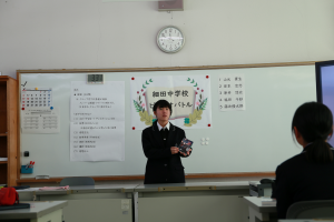 読書活動の一環として、「ビブリオバトル予選会」を実施しました。生徒一人一人が自分のおすすめの本を紹介し、その魅力を限られた時間の中で分かりやすく伝えていました。発表では、声の大きさや表情にも気を配りながら、本の内容や面白さを相手に伝えようとする姿が多く見られました。