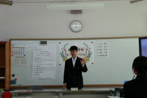2学期の修了式を行いました。生徒発表では、1年生が「自分は積極性に欠けているため、これからは周囲の様子に素早く気づき、行動していきたい」と今後の目標を発表してくれました。また、2年生は「自分が自信をもてるような取組を行うこと」「自分の気持ちや意志を強くもつこと」を大切にしたいという思いを発表してくれました。