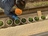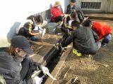 作業① 今までの土と本格的な土を混ぜてプレスしました。