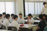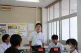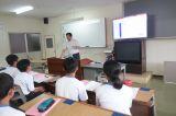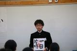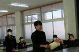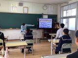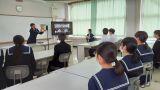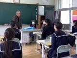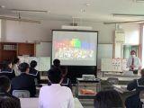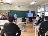 細田地区在住いちご農家の楠原さんからお話をいただきました。仕事のやりがいや大変なこと、大切にしていること、県外から日南市に移住してきたお話。生徒たちはお話を聞いた後、いろいろな質問をして、楠原さんの生き方を学び、自分の中に落としてこんでいました。