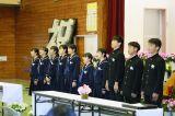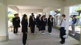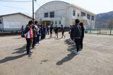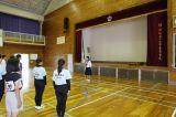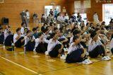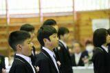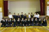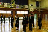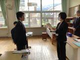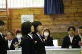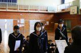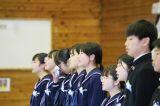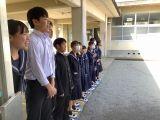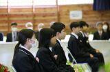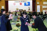 晴れやかな顔の生徒たち。JOYFM宮崎「ら・ら・ラジオ」で細田中学校が紹介されている間の式典でした。