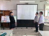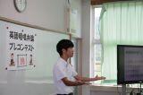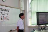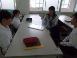 他校の生徒会役員に対して、本校の取組をタブレットを使って説明。発表の資料もわかりやすくまとめてありました。学校に帰ってから生徒会担当の海田先生に最後の挨拶。緊張が解けたのか充実感でしょうか、とてもよい表情をしていました。世代交代!細田の生徒会の伝統は続きます。お疲れさまでした。
