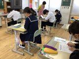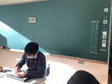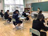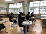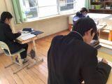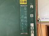 3年生の一部が私立高校の受験の日。残りの生徒は別日に受験するので黙々と自習中。今日のめあて「全員が同じ気持ちで一丸となり一日ガンバルぞ!!入試の人たちガンバレ!」学級のよさを物語っています。