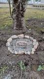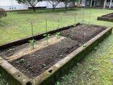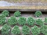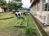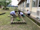 今朝の風は冷たいが、環境整備員さんの思いは熱い。校舎の南側ですくすく育っています。