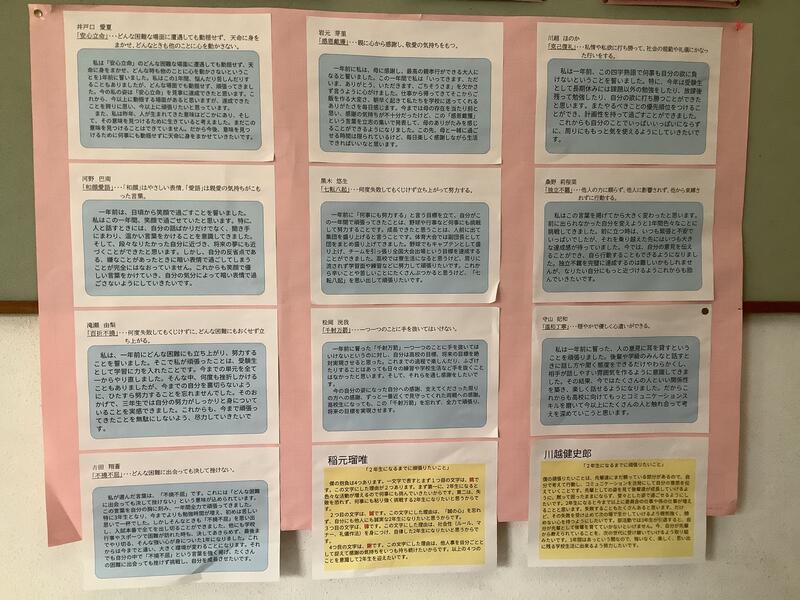 3年生の黒木悠生さんの決意文が掲載されました。卒業までもうあとわずか。自分だけではなくクラスメイトや細田中への思いがあふれる目標です。悠生さんの背中を後輩たちがしっかりと見ています。