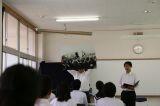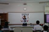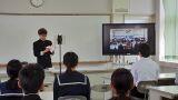 平和学習の一環として、延岡市出身の特攻隊員の実話に基づいた物語を、朗読劇の形で鑑賞しました。3名の朗読者による朗読劇は本当に心を打つ内容で、熱心に物語に耳を傾ける生徒たちの姿からは、何かを学び取ろうとする真剣な気持ちが伝わってきました。